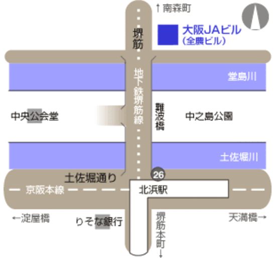 〒530-0047 大阪市北区西天満1丁目2番5号 大阪JAビル【MAP】 電話 06(6362)7701(代) FAX 06(6362)7705 |